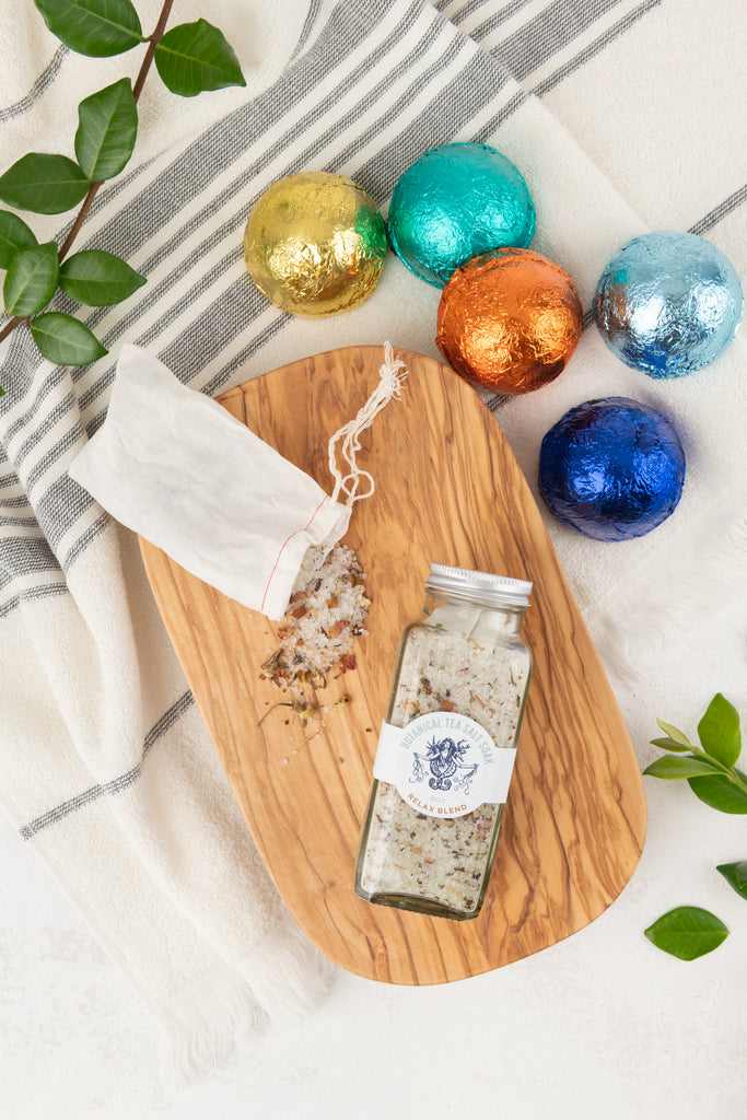 Restore your body and mind with our exquisite blend of tea leaves, dried fruits, flowers, and herbs with a therapeutic blend of essential oil notes of rosemary, lemongrass, sweet orange, and spearmint. Pour into a bathtub to soak, settling and relaxing muscles with the use of sodium chloride. We’ve added essential oils of sweet orange and lemongrass to improve focus and boost energy; and eucalyptus and sage leaves to stimulate and soothe, while rosemary and spearmint oils melt away aches, creating a fully restorative experience.