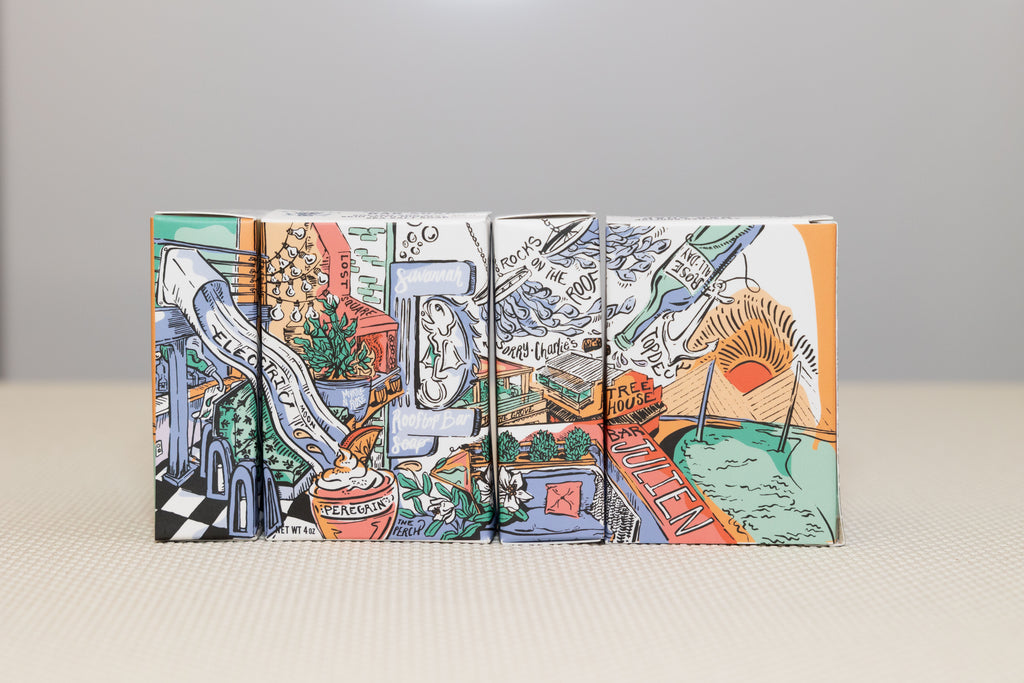 This box TOPS off the essence of Savannah's favorite destinations for a cocktail with a view. Each box features a “wrap around the box design” of iconic rooftop bars of Savannah.