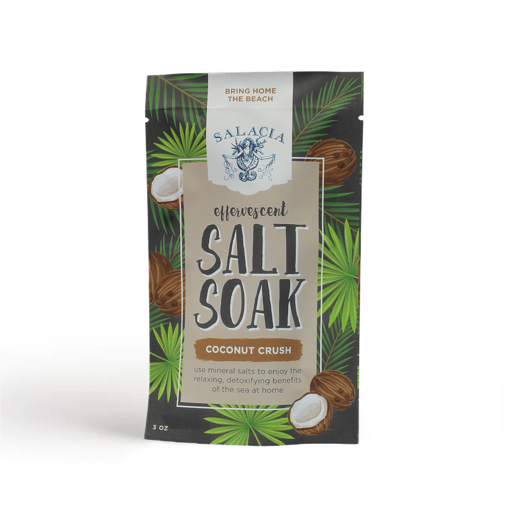 Coconut Crush scented mineral salts deliver relaxing and detoxifying benefits of the sea at home.