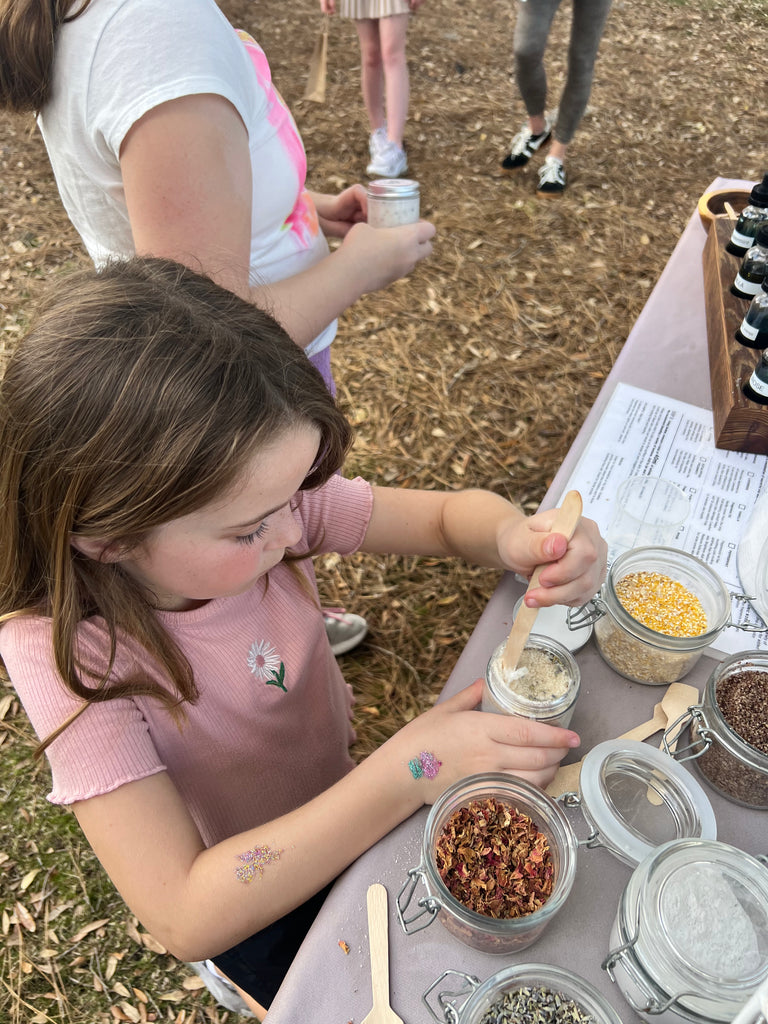 Our Blending Bar is a self-guided session where you can make your own Salt or Sugar Scrub. One of our team members will provide an overview of the process and step-by-step instructions and worksheets to make your own fragrance blend, customize your product with sea salts, sugars and other exfoliants and choose from a variety of natural botanicals.