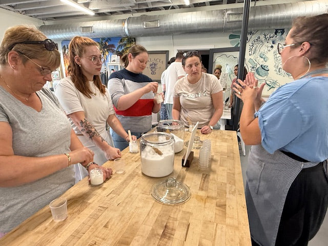 "The scrub making blending bar experience was outstanding. Your assistant did a great job giving us the history of the area. Afterwards, the first few in the group got started making their scrub, and the others quickly followed. There wasn’t a lot of lag time, which is good, but there was just enough for our attendees to be able to look around the shop and make some purchases.