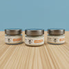 2.5oz product packaged in a glass vessel with metal lid. Label is printed with Biostone (stone, not plastic!)