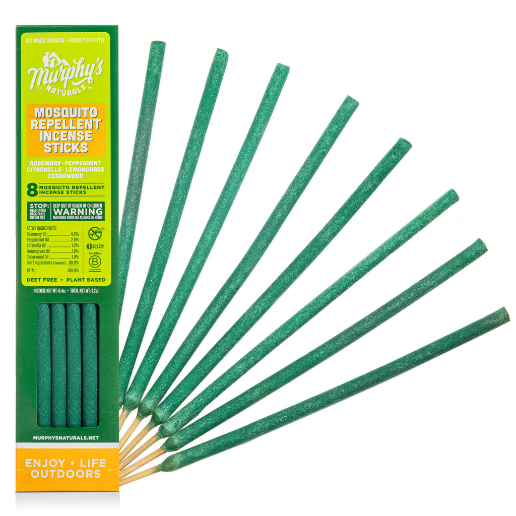 Murphy's Naturals Mosquito Repellent Incense Sticks are infused with citronella, rosemary, peppermint, lemongrass, and cedarwood oils. The sustainable formulation of these key plant-based ingredients burns clean, naturally.